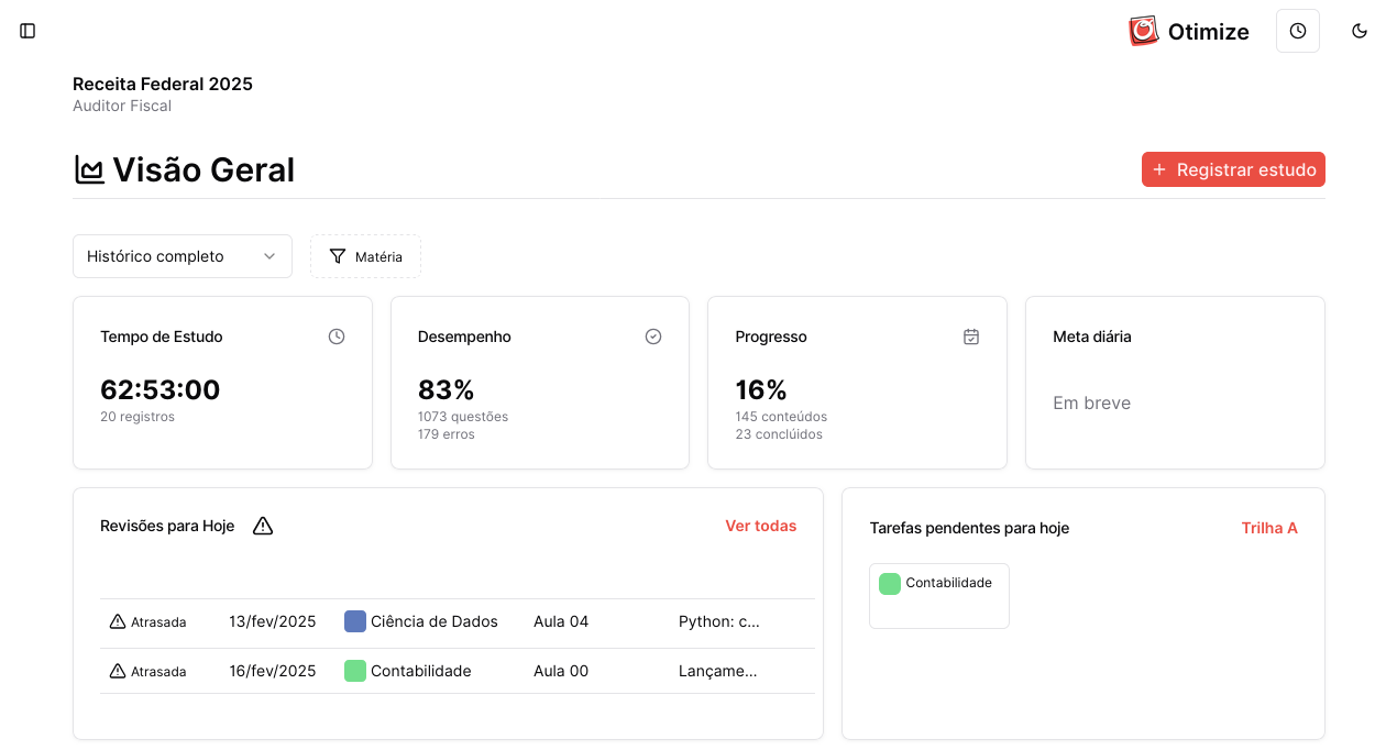 Disponibiliza uma visão geral do Plano de Estudos, para que você nunca se perca no seu planejamento.