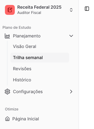 No seu Plano de Estudos do Rotinize, você verá na barra de navegação lateral o link para as Trilhas Semanais: