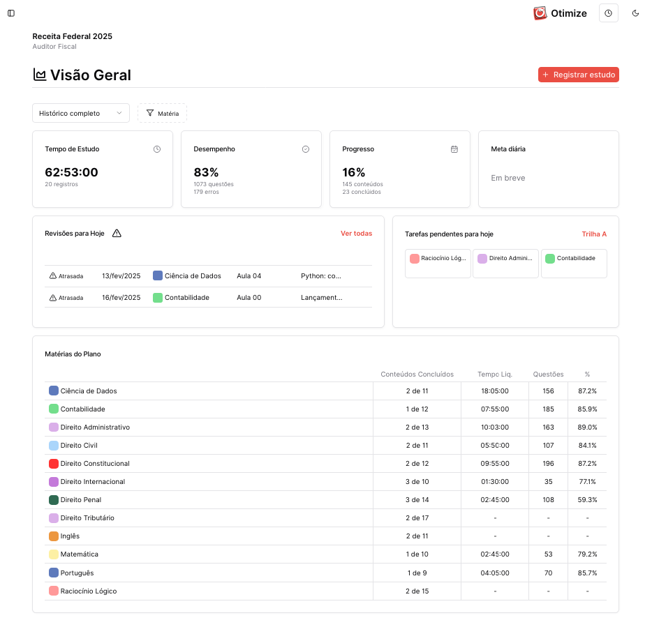 E finalmente, o acompanhamento constante dos tempos de estudo e do desempenho em questões são uma excelente fonte de motivação. Nosso progresso diário fica escancarado. Ao vermos nosso progresso, ficamos motivados a continuar estudando.