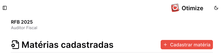 Com o projeto criado, o Zé Luis agora precisa cadastrar todas as matérias do curso preparatório que ele adquiriu para o concurso de Auditor Fiscal da RFB.