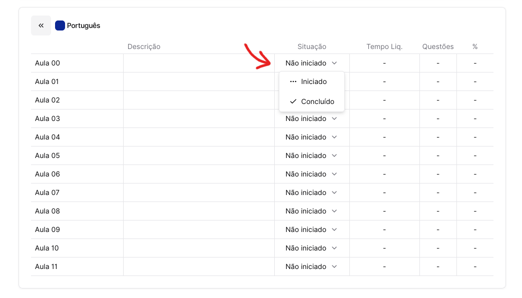 - Caso o conteúdo tenha sido concluído, o Zé Luis vai lá e altera a situação para